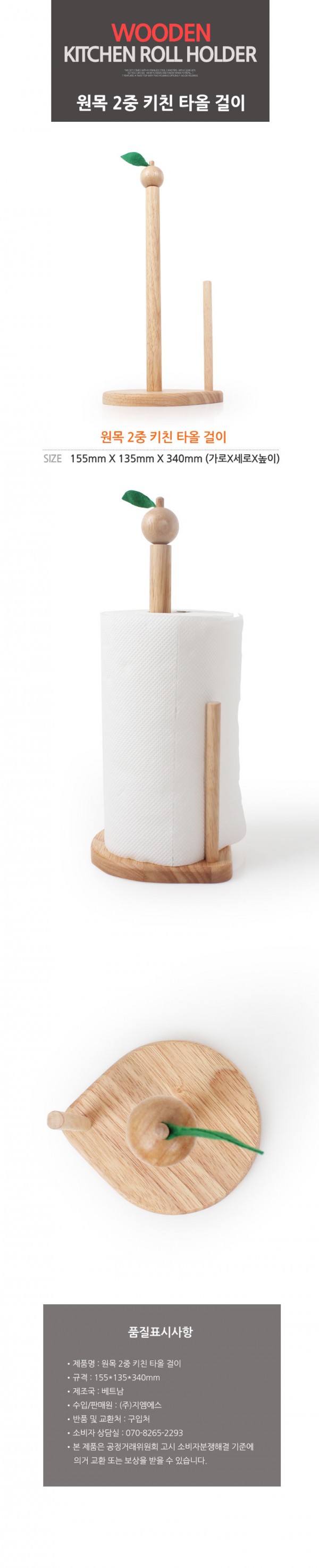 -상품명 : 원목 2중 키친타올 걸이-상품소개 및 정보 : 상세페이지 참조-회원제안가격 : 4,900원-구매처 회사명 : (주)지엠에스